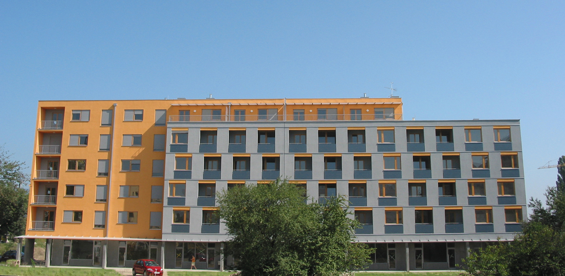 Stambeno-poslovna zgrada 2B-4 smještena neposredno uz novi gradski trg, projektirana je u zadanim tlocrtnim i visinskim gabaritima, te unaprijed definiranom strukturom stanova prema programu poticane stanogradnje.