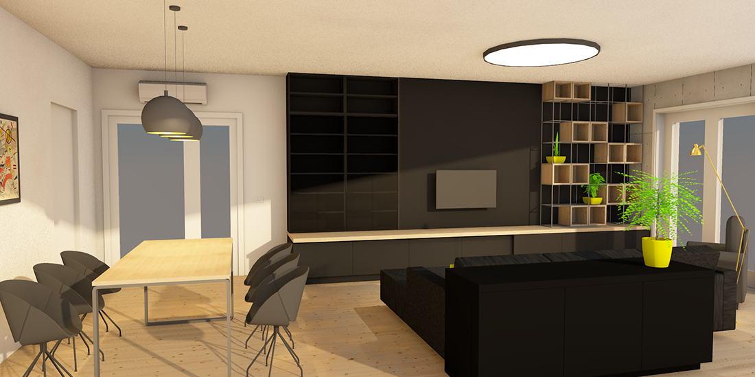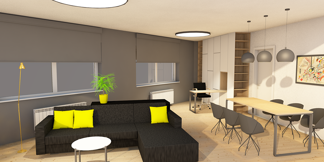 Želja investitora bila je zonirati i osmisliti nepravilan prostor boravka s blagovanjem u novijoj stambenoj zgradi. Investitori su izrazili želju za jednostavnim prostorom, čistim linijama, ali sa dozom industrijskog dizajna u pojedinim detaljima.